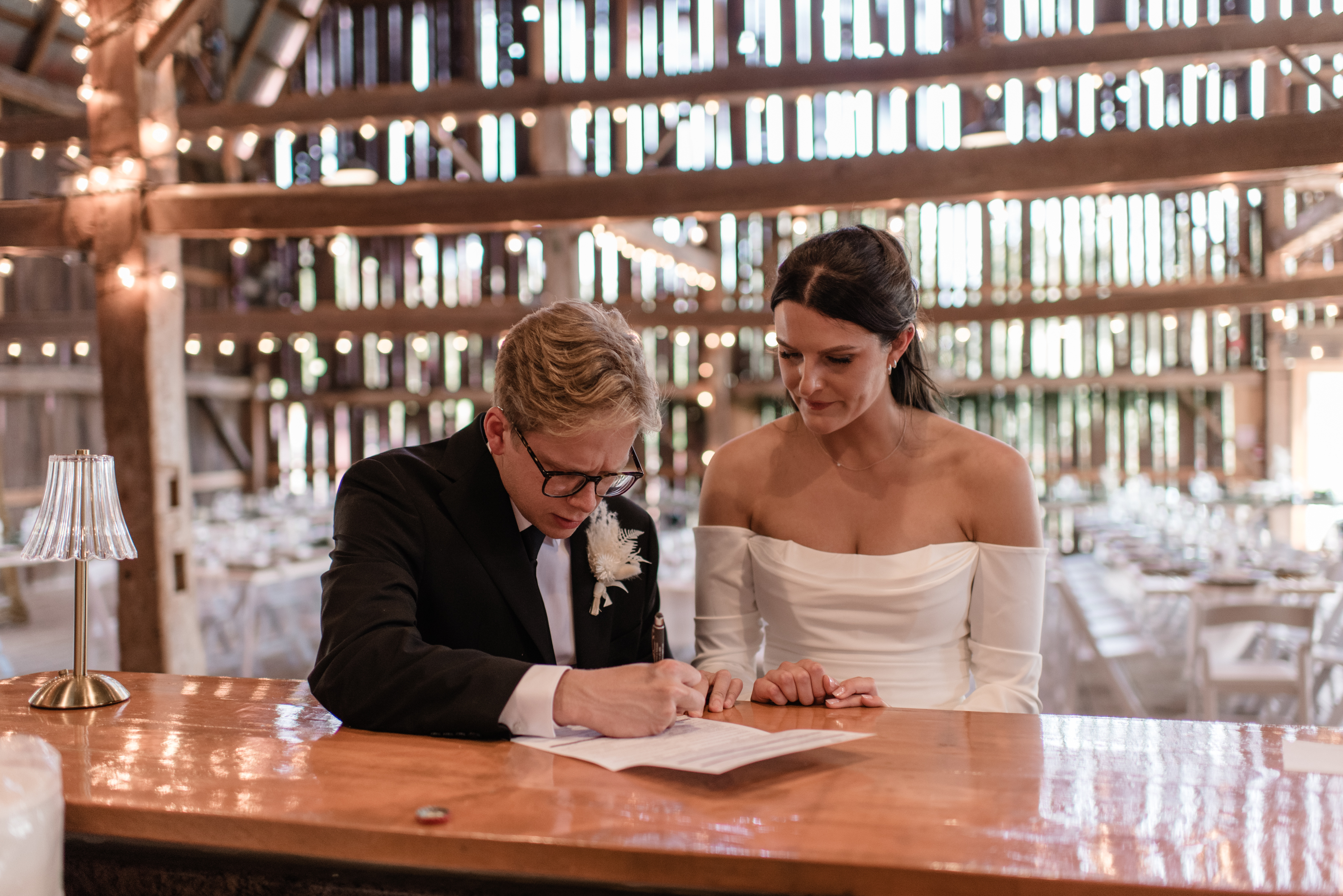 One of the unique touches they chose was to sign their vows before the ceremony. This quiet, personal moment allowed them to connect with each other in a special way before the festivities began. Instead of following tradition and walking down the aisle, Hope and Connor decided to walk toward their guests, greeting them with smiles and excitement as they made their way to the ceremony.